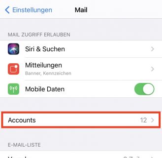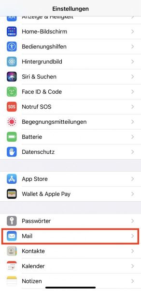 Unter dem Menü Einstellungen wählen Sie Mail aus: