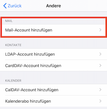 Wählen Sie nun Mail-Account hinzufügen aus:
